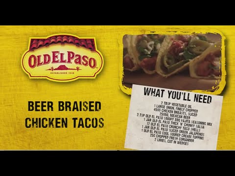 Beer Braised Tacos | Andy Bates | Old El Paso - Old El Paso Mexican Wedges - Learn how to make delicious beer braised chicken tacos, with our step-by-step tutorial from Andy Bates. Ingredients Needed: 2 tablespoons vegetable oil 1 large ...
